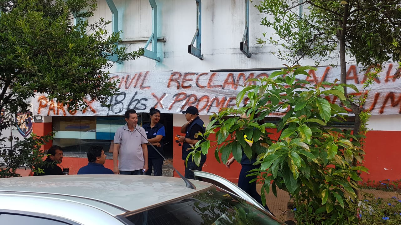 En consecuencia, iniciaron un corte frente al edificio ubicado por Sarmiento, entre Rivadavia y Tres de Febrero.