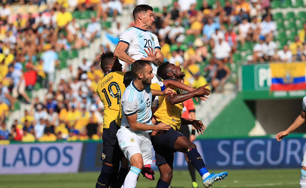 Cambios: en el segundo tiempo, antes del inicio, Paulo Dybala por Martínez (A), Guido Rodríguez por Paredes (A), Jhonny Quiñónez por Cifuentes (E); Marcos López por Espinoza (E), Enner Valencia por Sornoza (E) y Ángel Mena por Castillo (E); 12m. Nicolás Domínguez por Alario (A); 20m. Alexander Alvarado por Plata (E) y Diego Palacios por Estupiñán (E); 24m. Matías Vargas por González (A); 31m. Renzo Saravia por Foyth (A); 36m. Leonardo Balerdi por Pezzella (A).