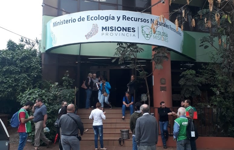 En la mañana de este miércoles, los trabajadores del Ministerio de Ecología se encuentran reunidos en el Ministerio de Trabajo de Misiones.