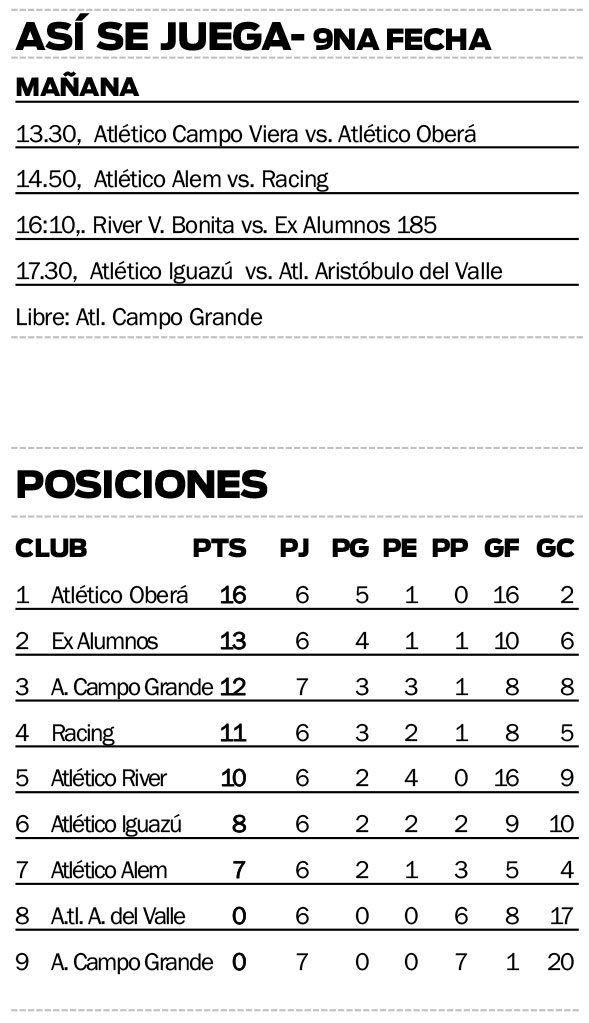 De acuerdo al programa elaborado por los delegados, el primer encuentro a jugarse en la jornada sabatina será Atlético Campo Viera ante Atlético Oberá.