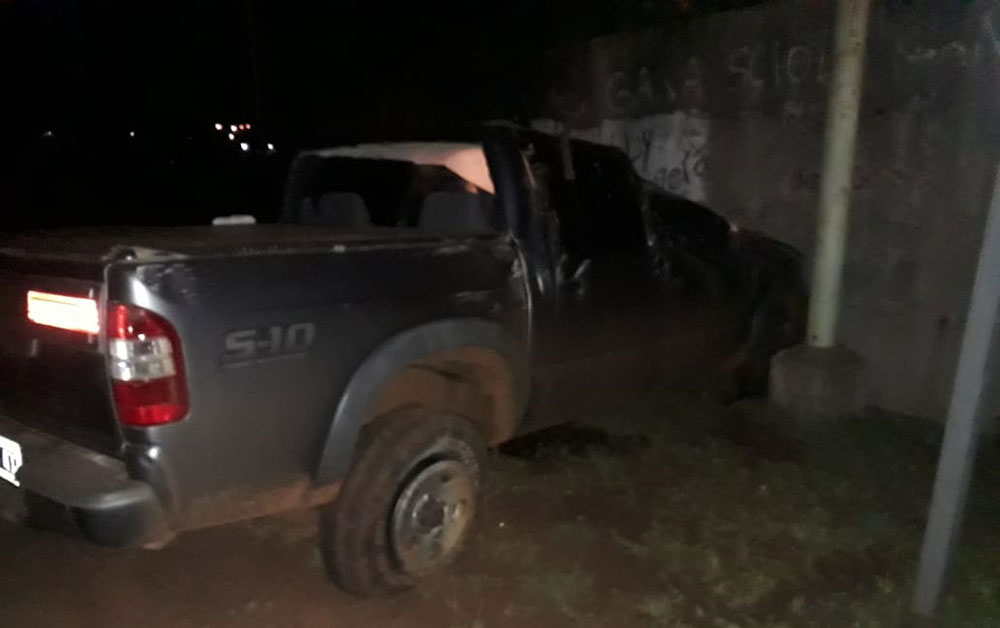 Según fuentes policiales este sábado por la noche a las 20.15, en la intersección de la ruta nacional 14 con la avenida Pincen de Oberá, cuando por razones que se tratan de establecer, una camioneta Chevrolet S-10 que era guiada por Eusebio Ramón Olazar de 62 años, acompañado por Sonia Alejandra Quensell de 36; despistó e impactó frontalmente contra el muro de contención.