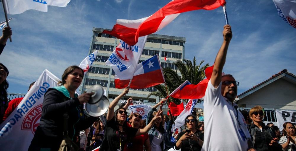 Profesores de Chile llaman al pueblo a realizar la mas grande revolución. #EstoPasaEnChile #ChileDesperto pic.twitter.com/bmC0Umdji3