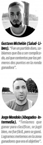 En Intermedia hubo goleada de Médicos, Abogados y Contadores United; y en Senior vencieron Docentes, Profesores y Médicos, con empates de Ingenieros – Asociados y Contadores – Derecho y Justicia, ambos por 1-1. El fin de semana arrancan la segunda ronda.