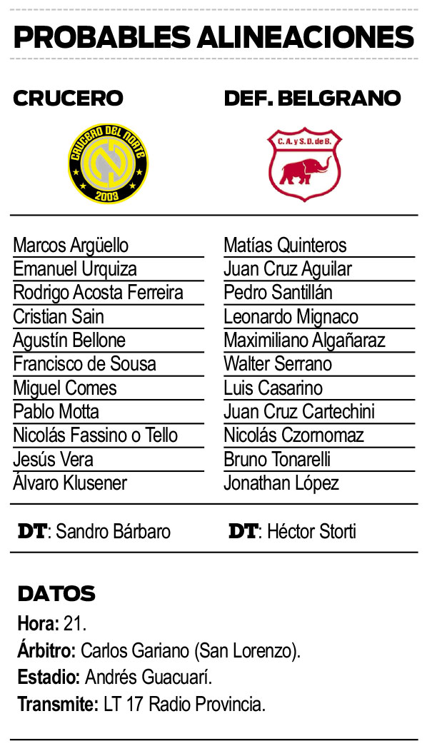 Después de la seguidilla de buenos resultados, Crucero del Norte va por más en la zona 1 del Torneo Federal A y hoy tendrá su próximo escollo: Defensores de Belgrano de Villa Ramallo, que no pasa por un buen momento.
