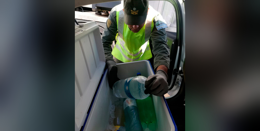 Inmediatamente, los gendarmes divisaron dos bidones y, dentro de una conservadora una botella conteniendo la sustancia sospechosa.