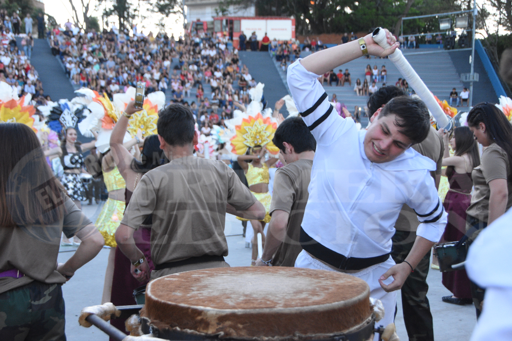 La noche se adueñó de la jornada, pero la fiesta seguía, se hacía sentir en cada estudiante, en las hinchadas que agitaban las tribunas sin parar. Nada los detenía, ya pasadas las 20 el público recibía a los alumnos de Colegio Martín de Moussy, que presentó “Beisbol”. Luego fue el turno del BOP 1, con “El cuarto poder: los medios de comunicación”.