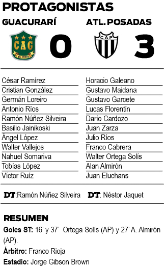 Como pudo, el elenco de Ramón Núñez Silveira intentó descontar pero sus dirigidos no estuvieron a la altura de las circunstancias. Y, para colmo, a los 37 minutos llegó la estocada final de Atlético Posadas que liquidó el pleito con otro gol de Ortega Solís.