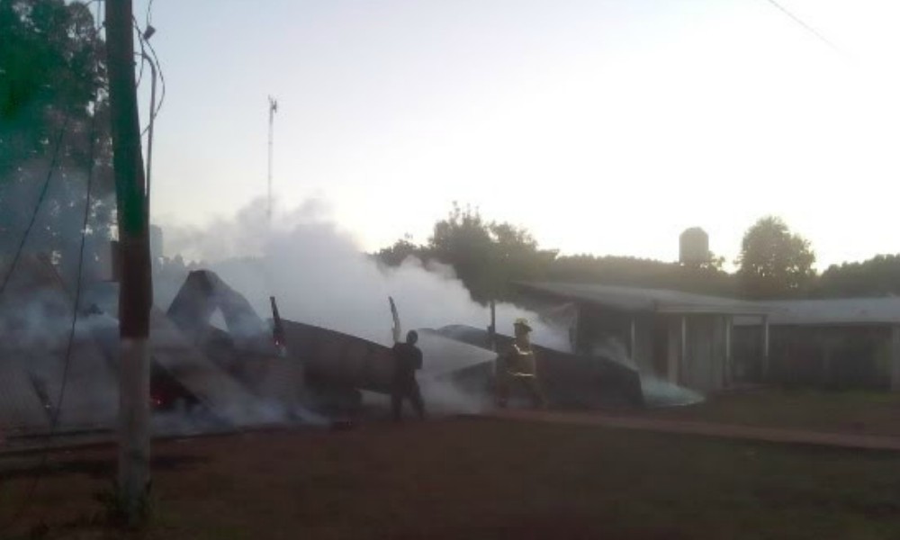 Un llamado a los bomberos voluntarios de San Pedro alertó sobre un incendio que se desató en la Escuela 904, ubicado en colonia Puerto Argentino 1. Al llegar al lugar, constataron el grave avance de las llamas que terminaron por consumir el establecimiento en su totalidad.