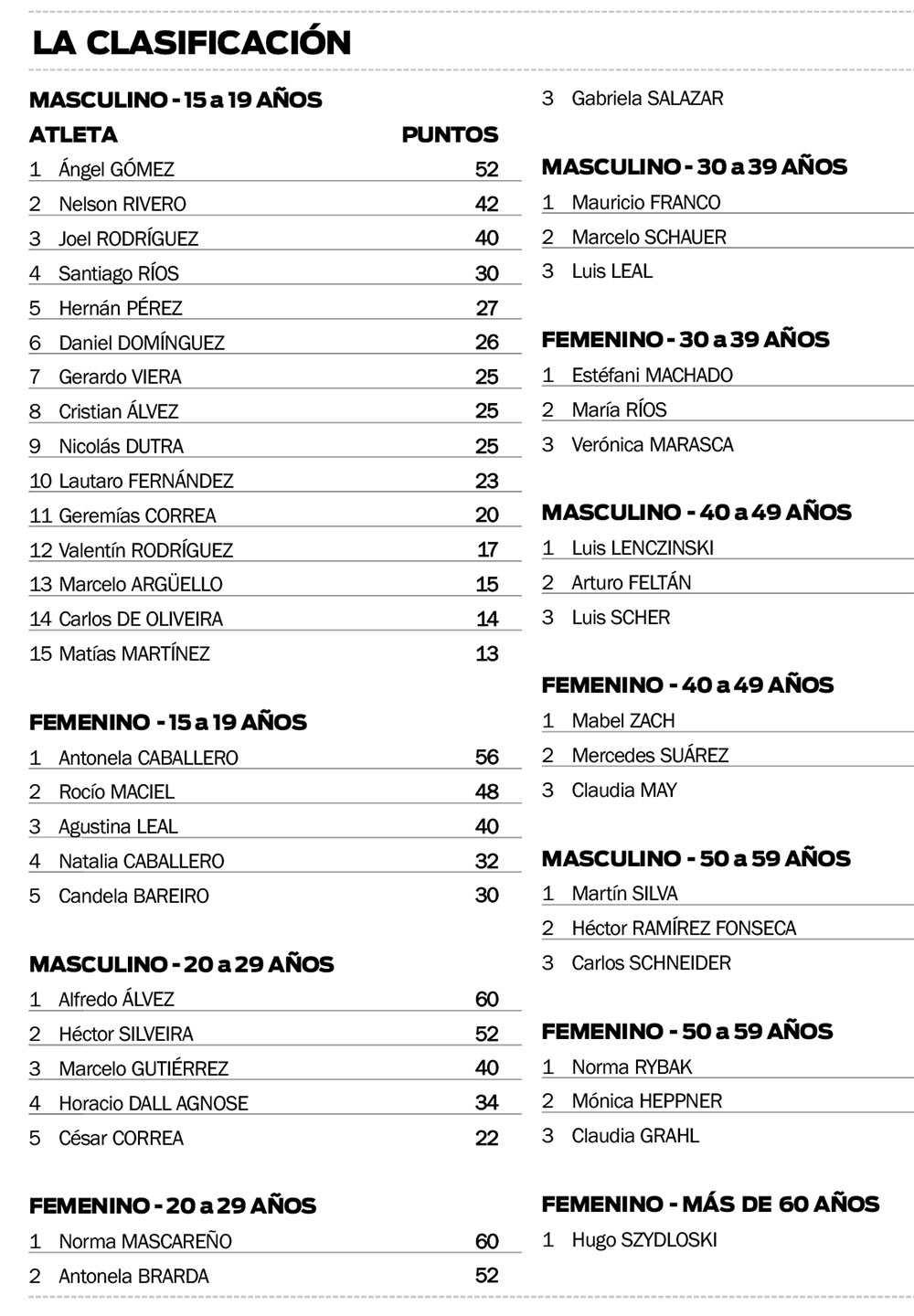 Los caminos de Bonpland fueron el escenario. En la rama masculina, el vencedor fue Alfredo Álvez (Alem), quien marcó 18m07 para recorrer los 5 mil metros. En damas, en tanto, el triunfo fue para Candela Bareiro, de Los Helechos, quien registró 26m29s. Tras la primera fecha en Gobernador López y la segunda, en Bonpland, se vendrá el cierre el sábado 2 de noviembre en Alem.