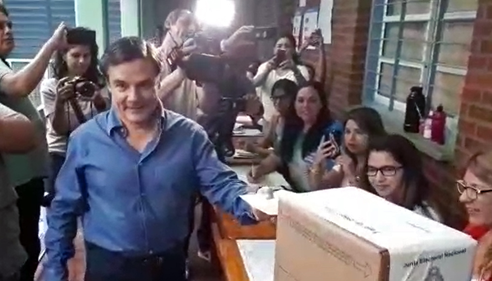 En dicha escuela ya votó alrededor del 30 por ciento. Se retiró tranquilo y en compañía de sus allegados.
