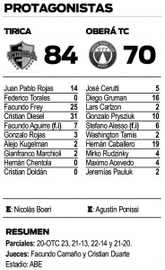 Tirica ajustó en defensa en el segundo parcial y en base a una buena eficacia perimetral consiguió torcer la historia. Diesel, Juan Pablo Rojas y Frey estuvieron muy certeros y los de Nicolás Boeri ganaron el segmento por 21 a 13, parcial que lo llevó a irse al descanso largo ganando 41 a 36.
