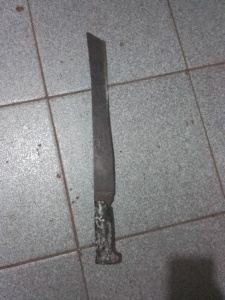 Los policías recorrieron la zona y localizaron al alborotado joven, quien insultó e intentó agredir a los efectivos, pero tras un breve forcejeo fue reducido, además el machete que utilizaba fue incautado.
