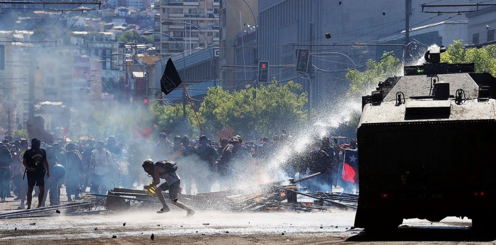 Según distintos medios locales, hubo violentos enfrentamientos entre manifestantes y la policía alrededor de la Casa de Gobierno en Santiago, en el décimo día desde un estallido social en el que murieron 20 personas.