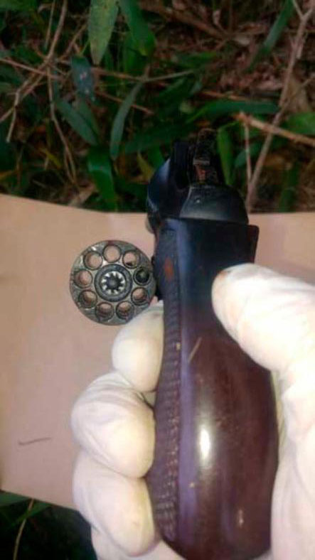 Tras un amplio rastrillaje los uniformados lograron hallar entre las malezas un revólver calibre 22, sin número y sin marca visible, con capacidad para nueve cartuchos (estando vacio) y un estuche para arma de fuego de cuero de color marrón.