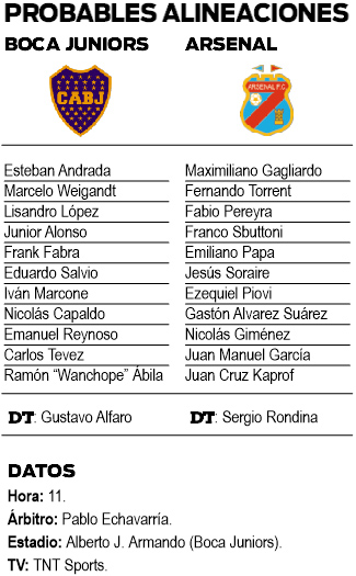 El Xeneize tiene 21 puntos, tres por debajo de Argentinos, y dejó la cima tras dos derrotas, ante Racing (1-0) y la más reciente frente a Lanús (2-1). Arsenal, con 17 puntos, cumple una muy buena campaña tras haber regresado a la máxima categoría, aunque lleva tres partidos sin ganar, una derrota ante Argentinos (2-1) y dos empates, frente a River (3-3) y Central Córdoba de Santiago del Estero (2-2).