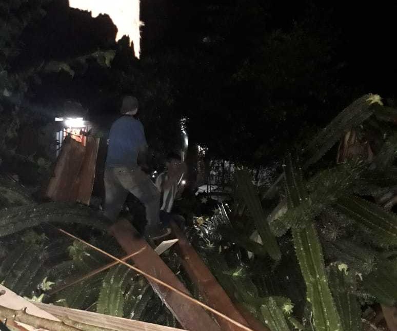 Esta noche una pertinaz lluvia y un fuerte viento se abatió sobre la localidad de Wanda, lo que provocó sobre la avenida República Argentina casi Edmundo Plucinski la caída de un árbol de cactus de gran porte sobre una casa de madera.