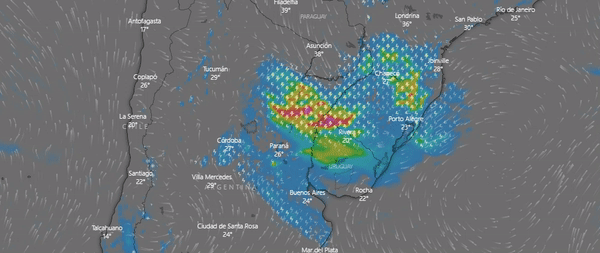 Según el parte, sobre el área de cobertura se registran tormentas de variada intensidad pudiendo ser algunas localmente fuertes y estar acompañadas de caída de granizo, intensa actividad eléctrica, ráfagas y principalmente abundante caída de agua en cortos períodos.