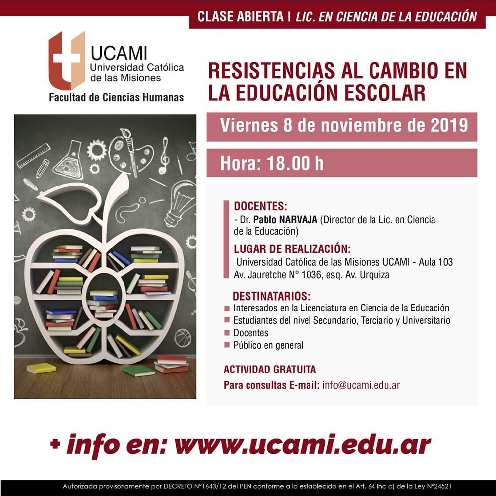 Se trata de una actividad gratuita organizada por la Facultad de Ciencias Humanas de la Universidad. Está destinada a aquellos interesados en la Licenciatura en Ciencia de la Educación que ofrece UCAMI, estudiantes del nivel secundario, terciario y universitario, docentes y público en general. Para más información puede acceder a la página web.