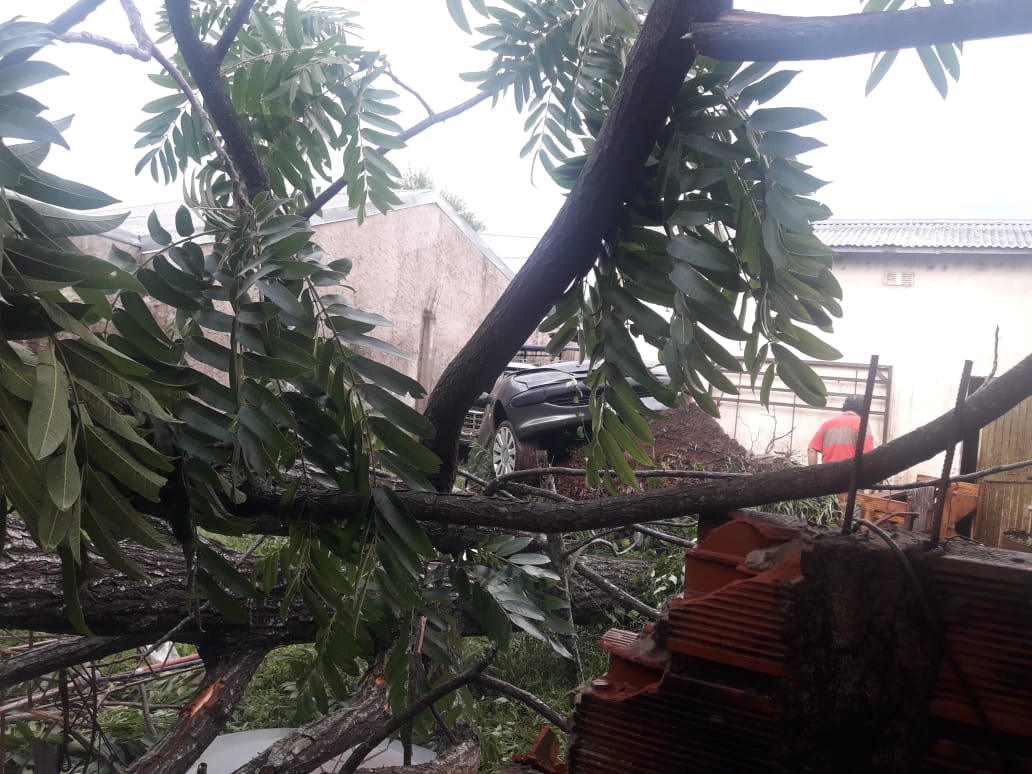 En este último hubo dos casas destechadas en forma completa, como así también la caída de ramas sobre el tendido eléctrico provocando la interrupción del servicio de energía eléctrica.