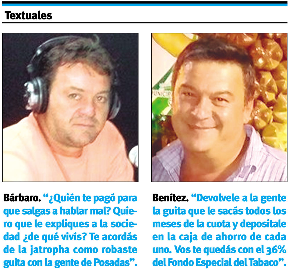 Fue Bárbaro quien llamó a Benítez desde su programa radial “Feliz Domingo”, para recriminarle por todas las críticas que éste le hizo durante la campaña electoral. Desde el inicio, la conversación subió de tono con fuertes acusaciones de uno y otro lado.