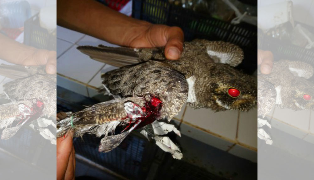Los vecinos alertaron sobre la presencia de un ave herida en ese lugar. El personal encontró al ave autóctona ‘Nyctidromus Albicollis’, también conocido como “atajacaminos”.