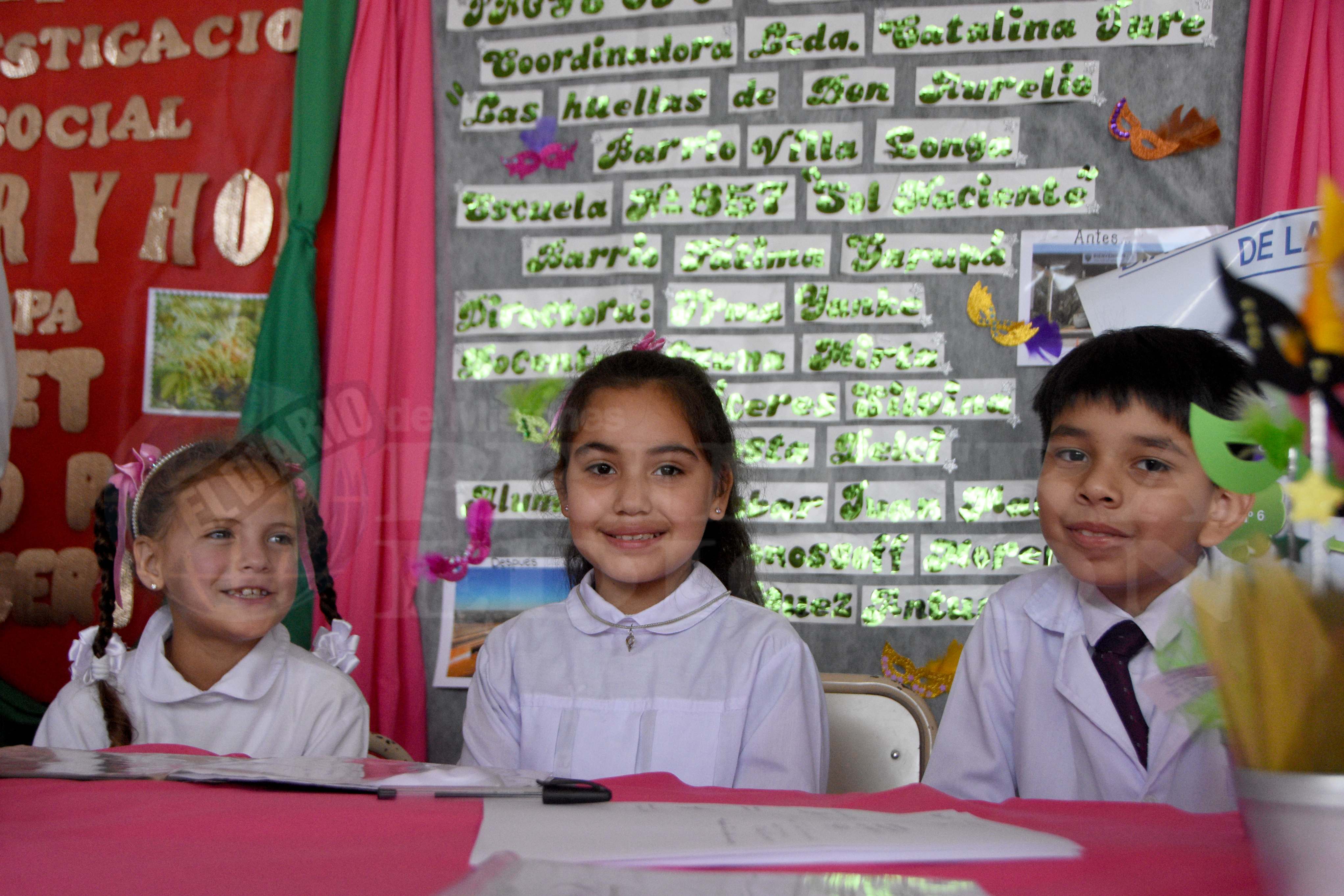 Juan Manuel, Maia y Morena cursan el tercer grado en la Escuela 857 e investigaron sobre la historia y actualidad del barrio Villa Longa.