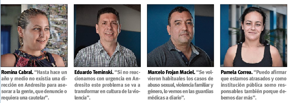 Con la misma claridad agregó el director del hospital zonal Marcelo Salvador Frojan Maciel (43): “Se volvieron habituales los casos de abuso sexual, violencia familiar y género, Es constante el problema y lo vemos en las guardias médicas a diario. Llegamos al punto de no saber cómo reaccionar o qué hacer. Falta el compromiso de todas las instituciones, de escuchar a los vecinos ante esta necesidad”.