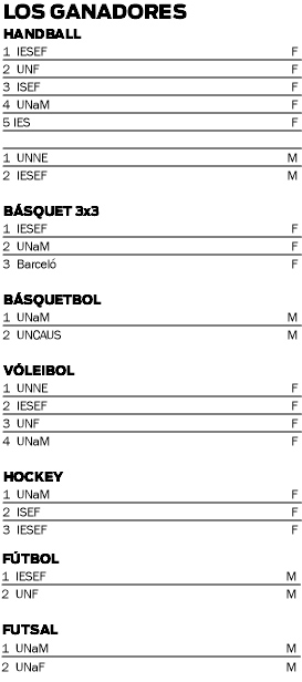 La Universidad Nacional de Misiones, el Instituto Superior Antonio Ruíz de Montoya y la Universidad Gastón Dachary, fueron parte de esta fiesta del deporte y algunos de ellos incluso se dieron el gusto de gritar campeones.