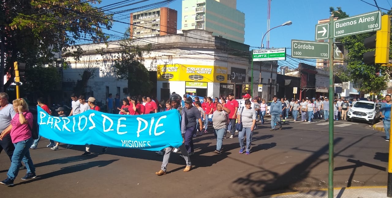 En la mañana de este martes, los integrantes de Barrios de Pie se manifestaron por las calles posadeñas hasta llegar a la sede de ANSeS.