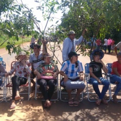 Durante el mediodía, un grupo de doce mujeres productoras se encadenaron sobre la arteria nacional, para profundizar el método de protesta. Bajo el intenso sol, cubiertas con gorros y sombreros, y ramas repletas de hojas arrancadas de árboles cercanos, las tabacaleras se sentaron juntas y se encadenaron unas a otras.