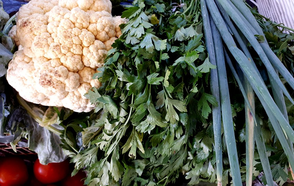 Box 13: lechuga el mazo $15; rúcula 2 mazos $25; cebollita 2 mazos $10 naranja 3 docenas $100.