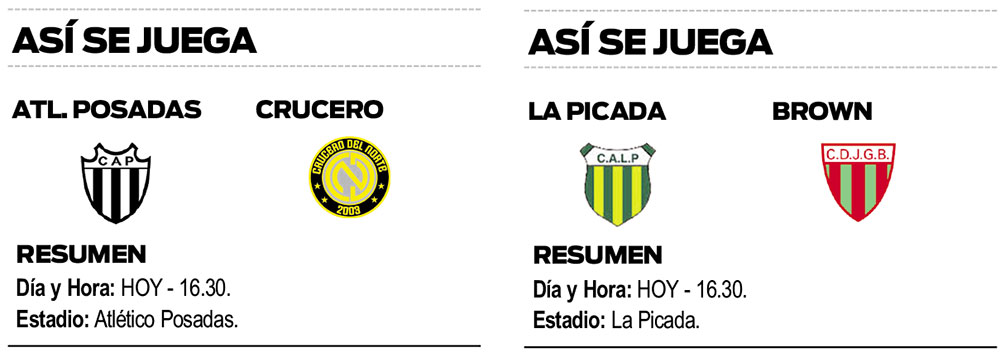 Esta tarde, a partir de las 16.30, en los barrios El Tajamar y Villa Cabello se llevarán a cabo las revanchas semifinales entre Atlético Posadas vs. Crucero del Norte y La Picada vs. Jorge Gibson Brown, respectivamente.