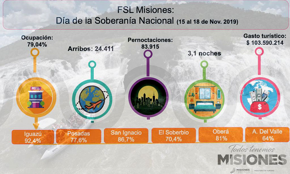 Al respecto, el ministro de Turismo de la provincia, José María Arrúa, expresó que “fue un fin de semana más que positivo para el sector turístico en Misiones. Esto es el resultado conjunto del sector privado y público para un destino que se encontró con gran diversidad de eventos, desde el Festival Nacional de la Música del Litoral en el Sur de la provincia, en Posadas, hasta la Feria de Artesanías, al Norte, en Puerto Iguazú”.