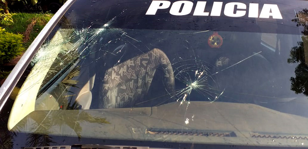 Sin embargo, cuando los policías se retiraban del lugar fueron atacados por un grupo de personas que estaban en la fiesta quienes les arrojaron botellas y piedras.