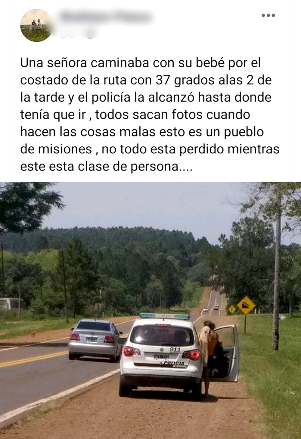 “Todos sacan fotos cuando hacen cosas malas, esto es un pueblo de Misiones, no todo está perdido mientras esté esta clase de personas” dice el posteo del ocasional testigo.