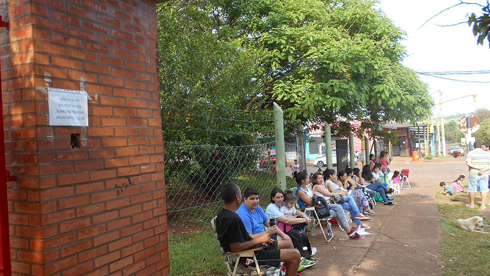 “Hemos establecido diferentes estrategias para evitar que ocurra esto de papás que pasan la noche frente a la escuela, muchas veces junto a sus hijos, pero no siempre resultan exitosas, principalmente en los barrios donde la franja etaria de los residentes en la zona es joven e Itaembé Miní tiene estas características”, contó.