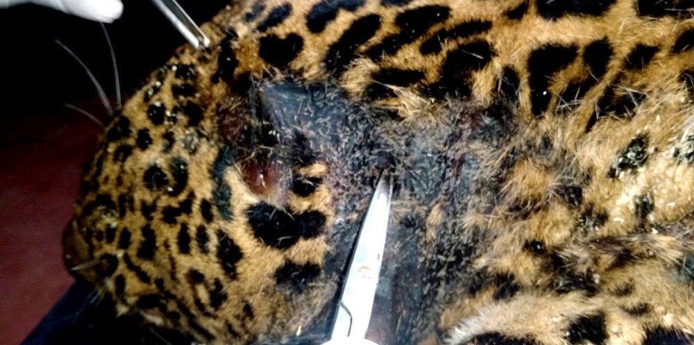 Al parecer tenía rastros de haber sido cazado, ya que presentaba orificios que podrían ser disparos en la cabeza y el vientre destruido.
