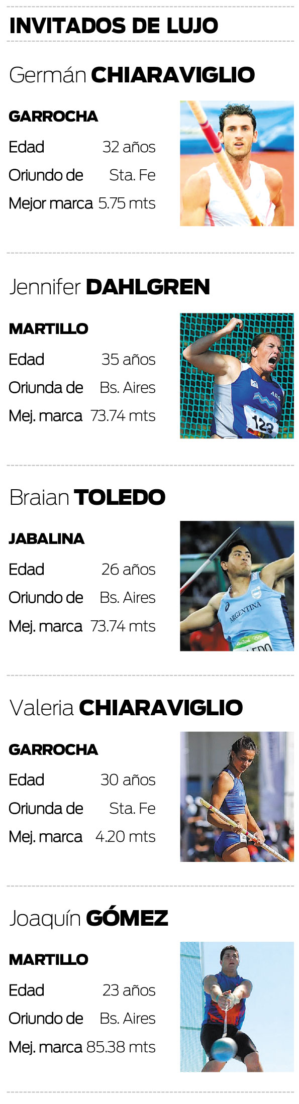 El acto de inauguración está previsto para las 17.30, con invitados de lujo como Germán Chiaraviglio (salto con garrocha), Jennifer Dahlgren (lanzamiento de martillo), Braian Toledo (lanzamiento de jabalina), Valeria Chiaraviglio (salto con garrocha) y Joaquín Gómez (lanzamiento de martillo).