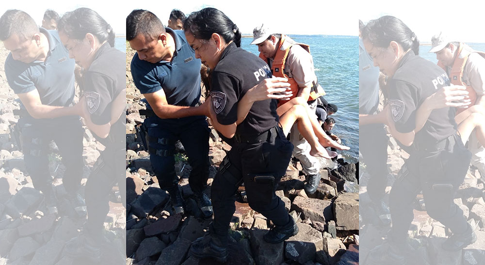 Posteriormente, una vez fuera del agua, la mujer acompañada de una oficial, fue traslada al Hospital Madariaga por haber ingerido abundante agua.