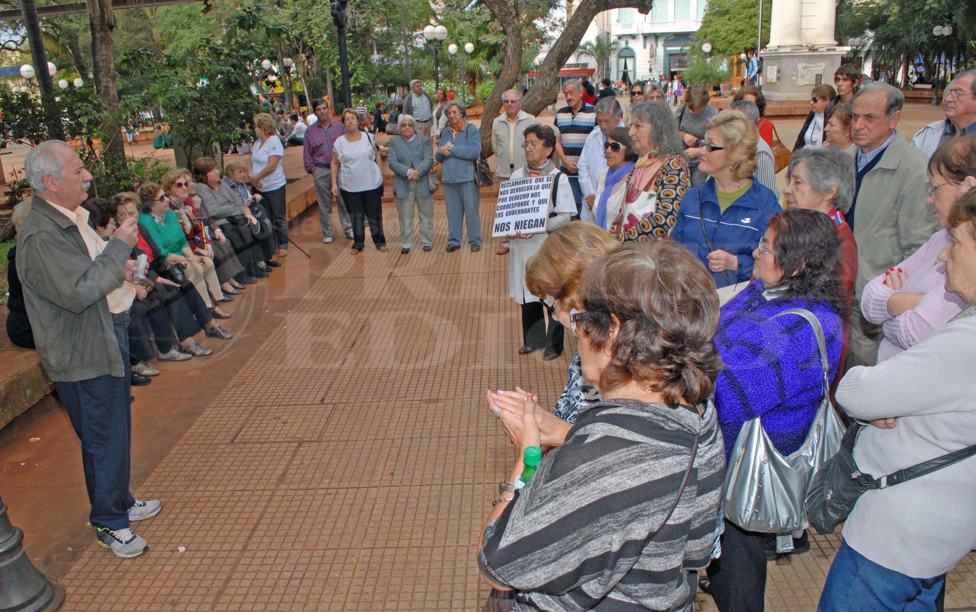 Sólo seis jubilados marcharon en esa primera marcha en la plaza 9 de Julio, ocurrida el jueves 24 de mayo de 2012: Damián Cura fue uno de ellos. También estuvieron Alberto Holz, Vitalino Acosta, Julio Medina, Teófilo Silva y Julio Ríos.
