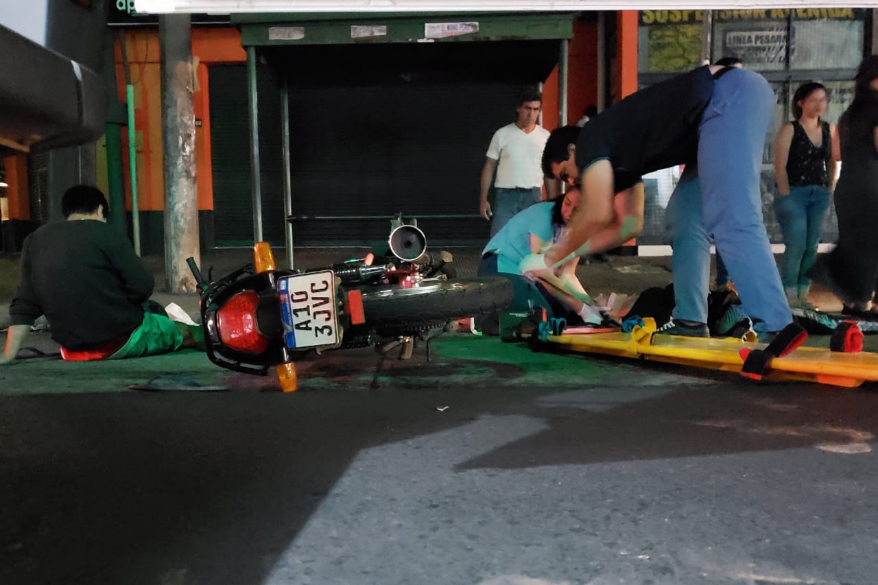 Dos personas, un hombre y una mujer embarazada, que circulaban por la avenida Uruguay a bordo de una motocicleta fueron embestidos por un automóvil a la altura de la avenida Comandante Rosales.