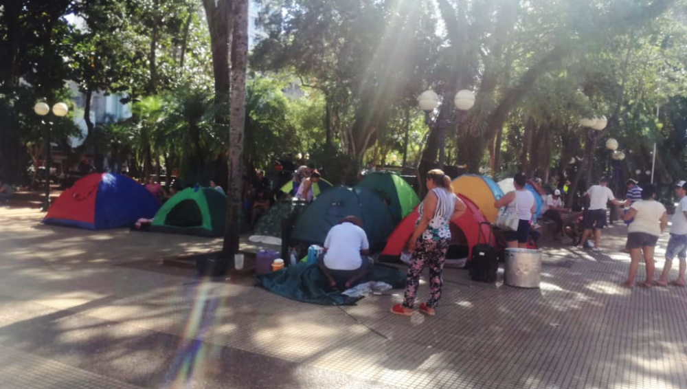 Alrededor de las 16 horas de este domingo, unos 200 manifestantes de la Zona Centro se hicieron presentes en la plaza 9 de julio de Posadas. Instalaron 50 carpas y se apostarán en ese lugar por tiempo indeterminado, hasta que el Gobierno provincial atienda sus reclamos.