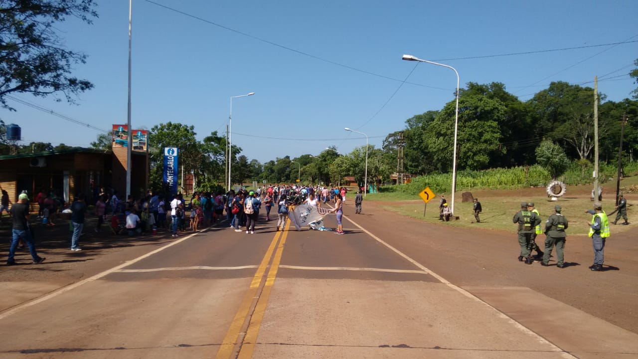 Un grupo de tareferos y agrupaciones sociales corta el tránsito sobre la ruta 12 a la altura del kilómetro 1.519 en Montecarlo.