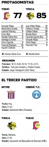 En los últimos diez reglamentarios, Tokio se encaminó y logró sacar diez de ventaja. Sin embargo, a puro amor propio, Tirica se apoyó en su técnico-jugador y en el buen momento de Fede Torales para forzar el tiempo extra. Allí se mostró entero y, con dos bombas clave de los mencionados antes, se aferró al triunfo. Rojas y Aguirre, desde la línea, sentenciaron la historia.