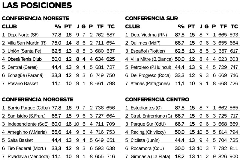 Para el Celeste, los dos compromisos que se vienen serán vitales. El jueves visitará desde las 21.30 en Armstrong, Santa Fe, al líder Norte. La gira seguirá el sábado desde las 21 en el sur santafesino, en la visita a Rosario Basket. La urgencia de OTC pasa por ganar de visitante, condición en la que hasta el momento no ganó en la Liga Argentina, segunda del básquet nacional.