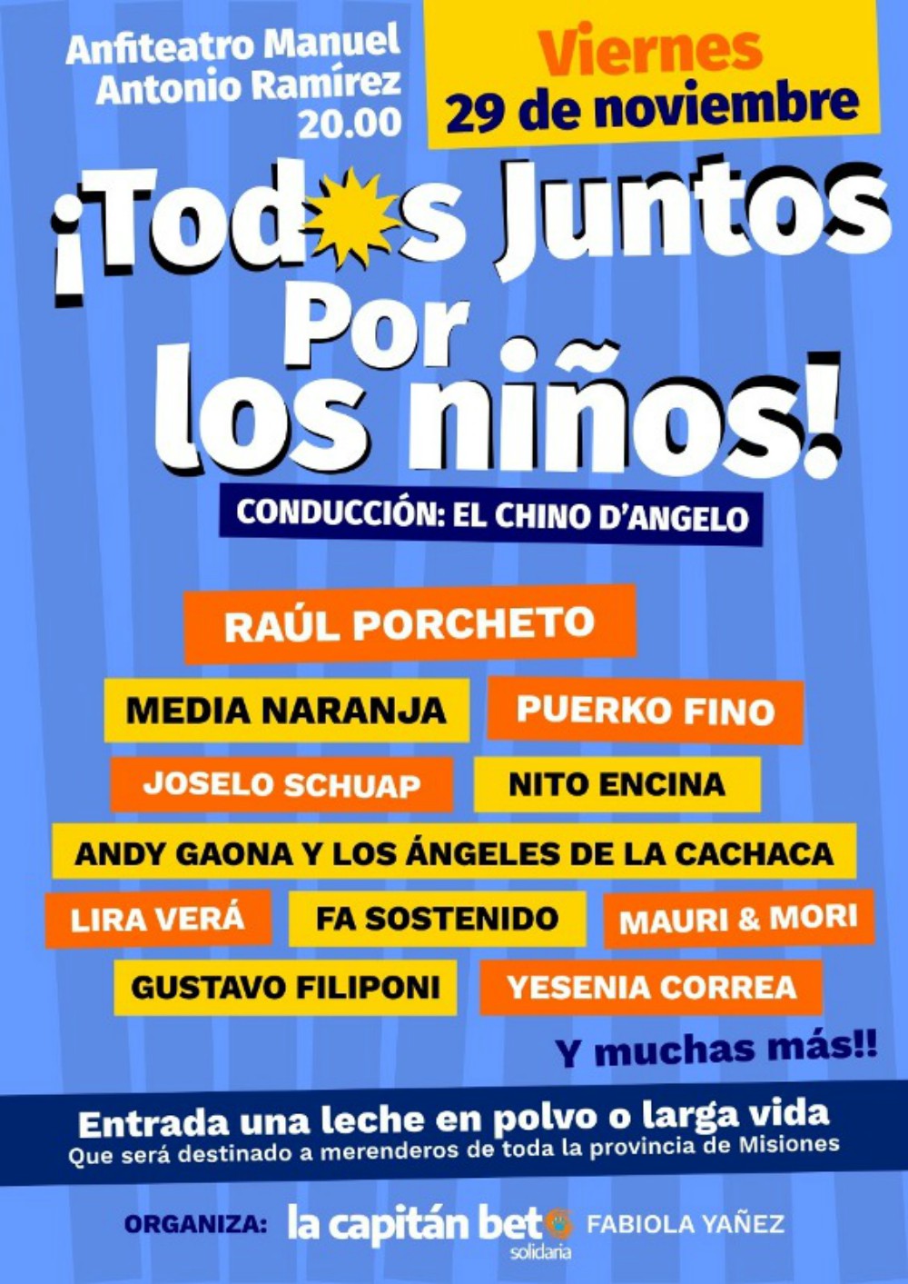 La iniciativa fue impulsada y organizada por la periodista y futura primera dama del país, Fabiola Yáñez, junto a la electa diputada de la renovación, Adriana Bezus, y la agrupación La Capitán Beto, con el objetivo de recaudar alimentos para los merenderos de toda la provincia. El festival contará con la actuación de diversos artistas populares que brindarán sus espectáculos musicales.