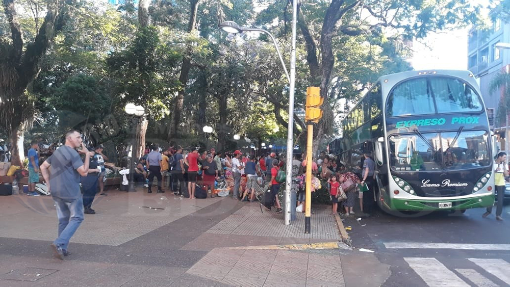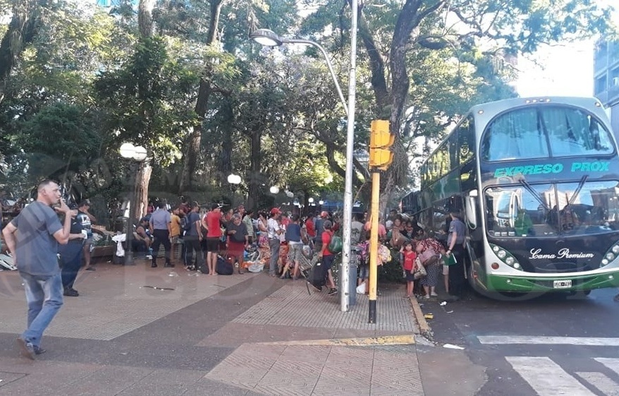 En total, cuatro colectivos buscaron a los aproximadamente 250 tareferos que acamparon en la plaza 9 de Julio desde el pasado 25 de noviembre.