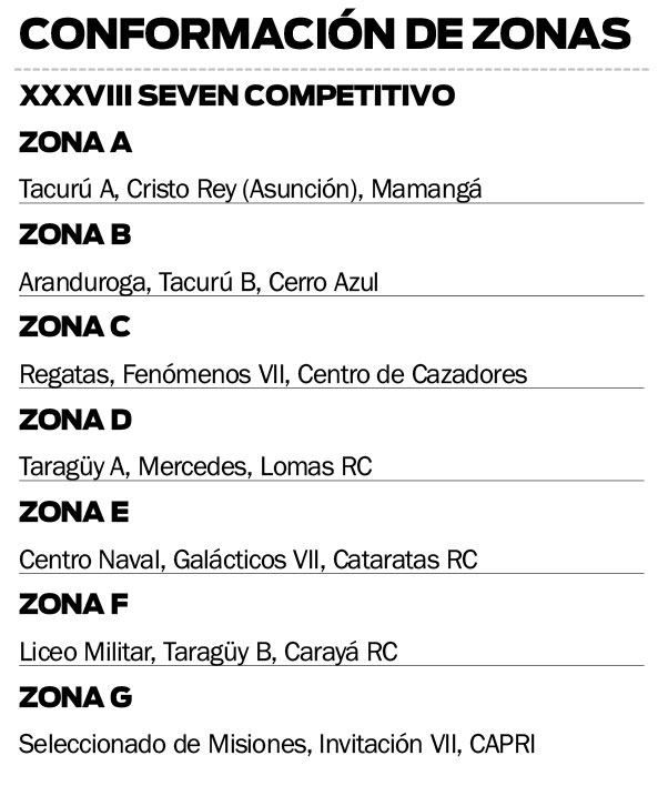 Por el lado del seven de gordos, estarán Tacurú, CAPRI, Centro, Centro Naval y Mercedes de Buenos Aires, Sixty de Resistencia (Chaco) y Taragüy de Corrientes con dos equipos.