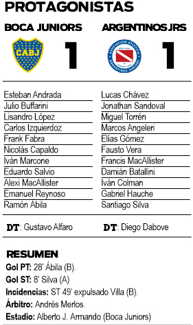 Boca acusó el golpe y se fue en búsqueda del gol que le dé el triunfo y la cima en soledad, pero se quedó en intentos. Argentinos se paró bien y no le dio chances al equipo de Alfaro. Digno lo del equipo de La Paternal que se quedó con un punto de su visita a la Boca. Así, repartieron puntos y ambos siguen como líderes de la Superliga.