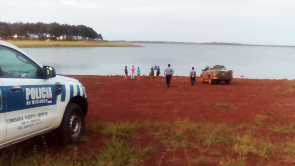 Personal de la Policía Lacustre de Misiones y del ministerio de Ecología, buscan intensamente en las aguas del Lago Urugua-í a un hombre de 43 años identificado como Hugo A.